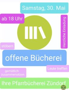 Am Abend der offenen Bücherei laden wir alle Interessierten auf ein gemütliches Beisammensein in der Bücherei ein.
